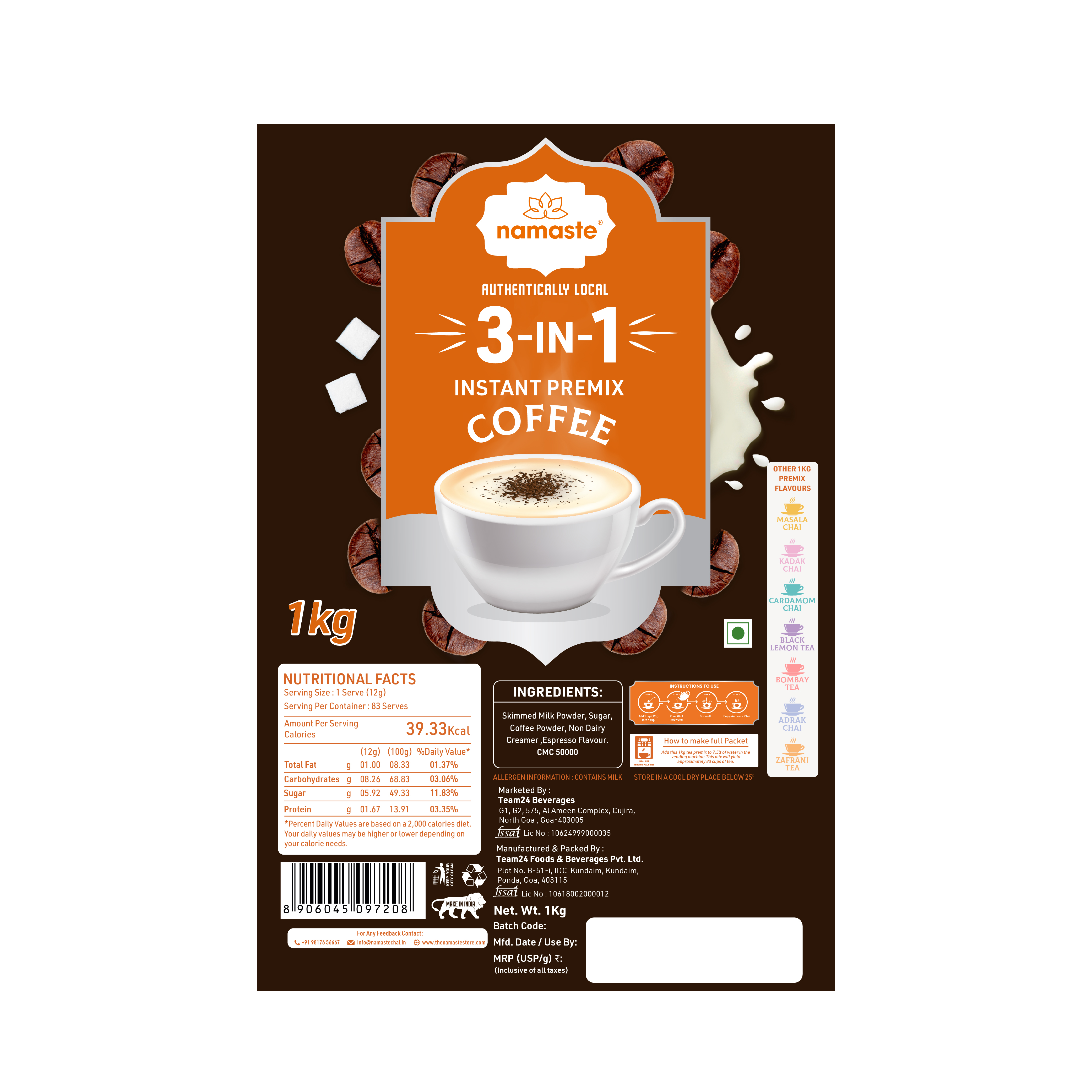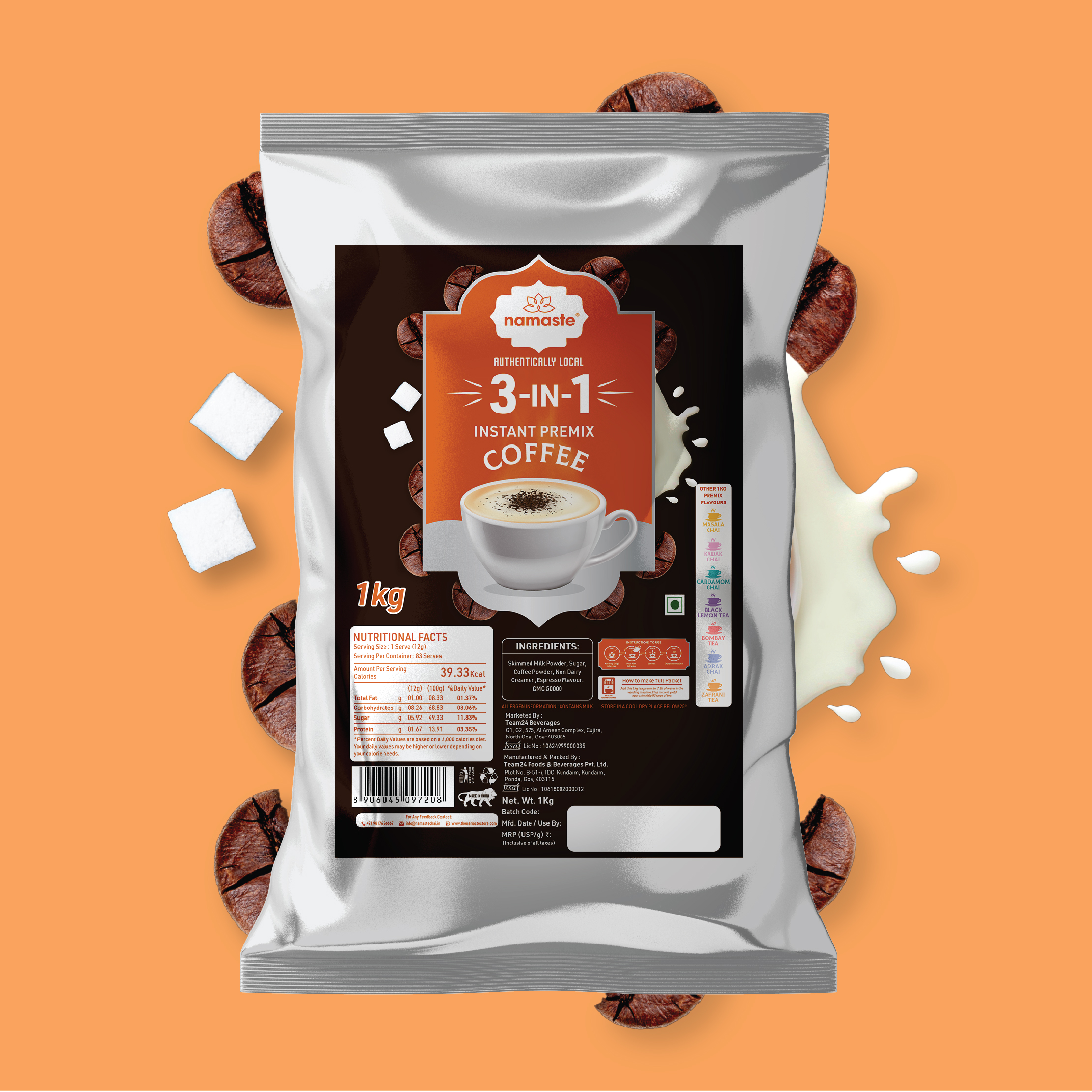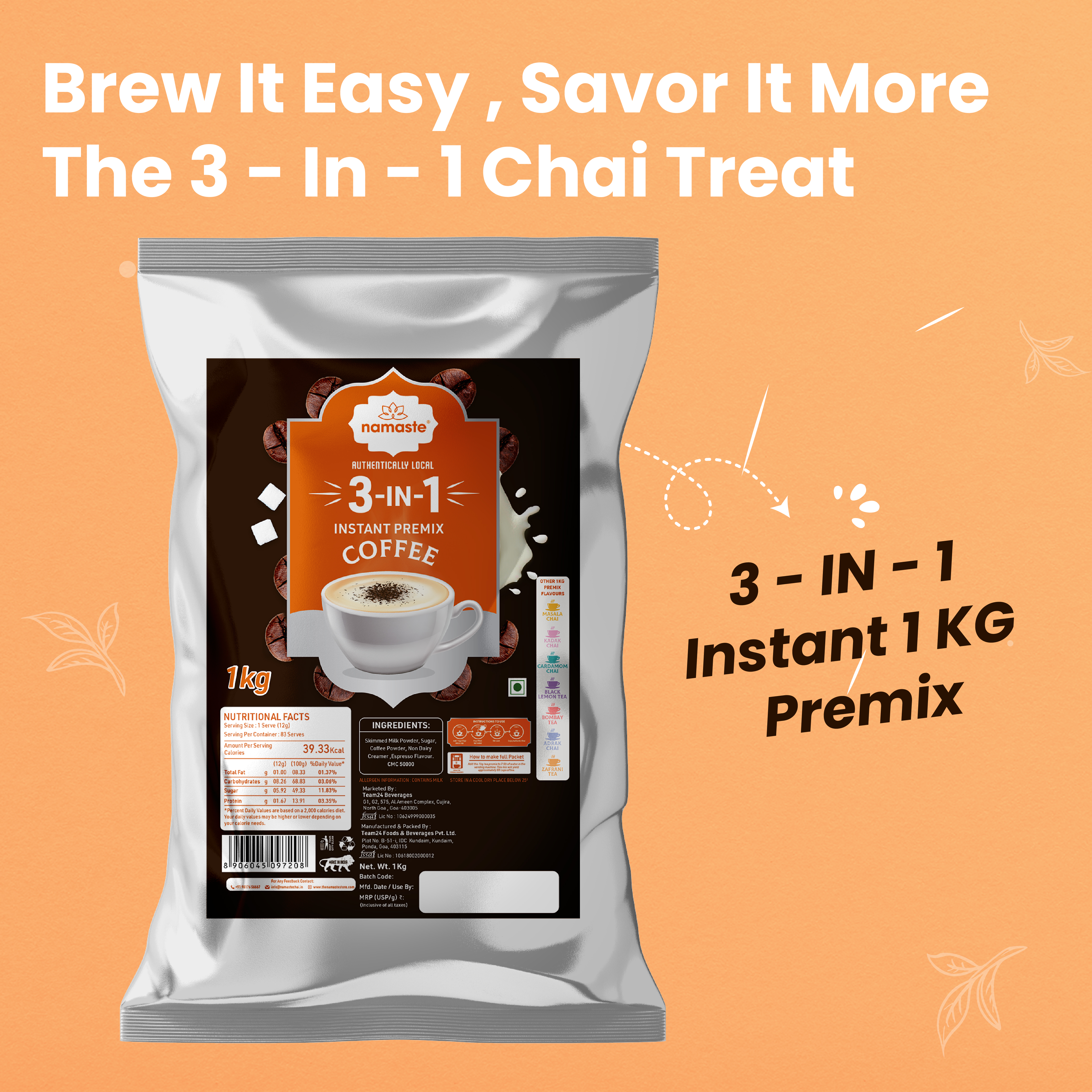 Namaste chai premix coffee adds a great taste to the your hot beverage made with pure ingredients. Its finest ingredients is good for taste, just add hot water and make your coffee in just few seconds. Make your day easy and energetic with namaste chai instant premix coffee.