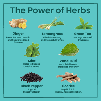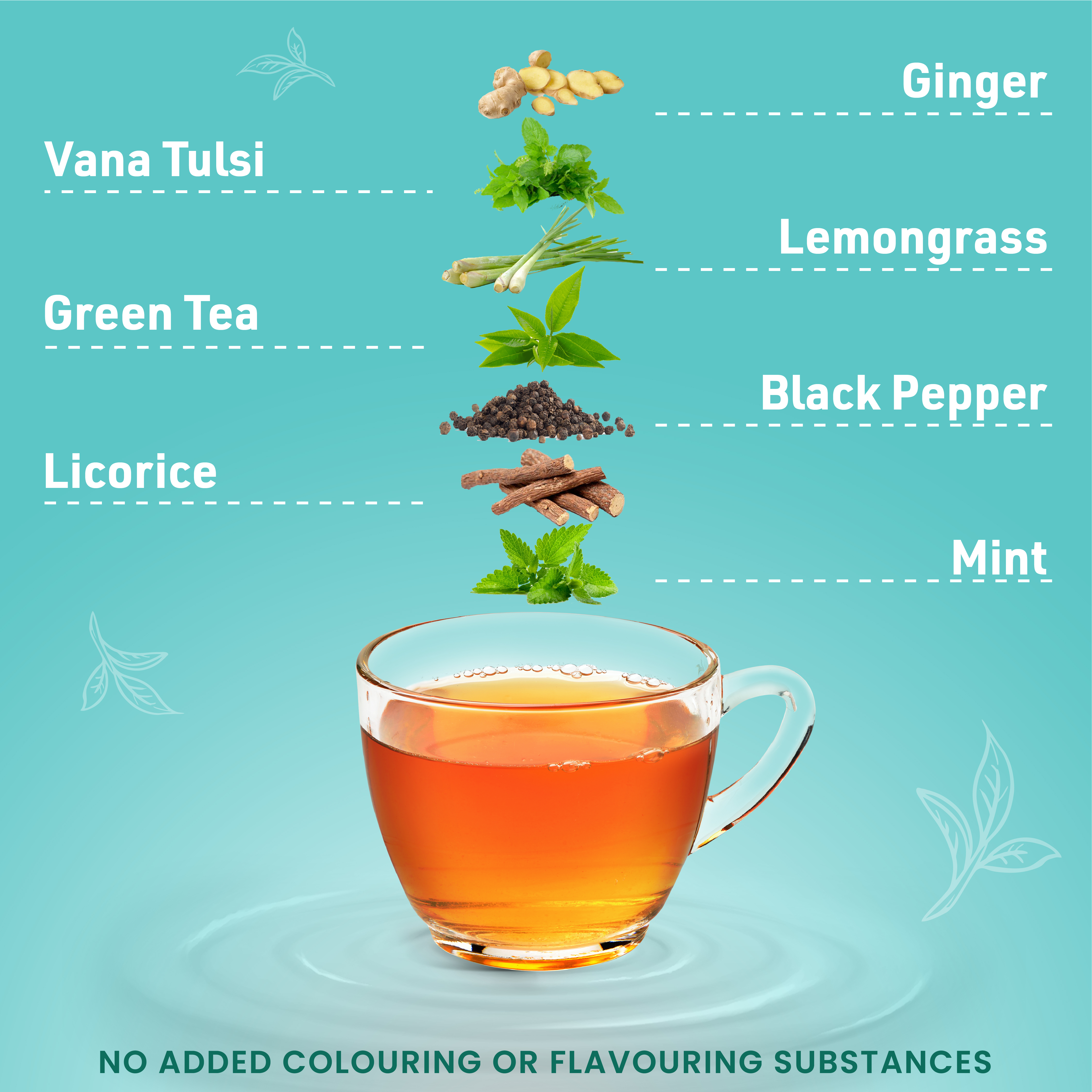 - Energising Herbs- Ginger, Tulsi, Adrak, Lemongrass, Mint with Natural Herbs.