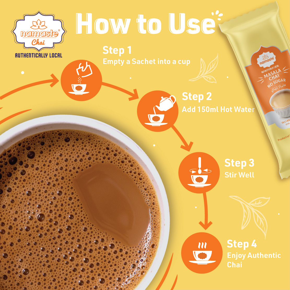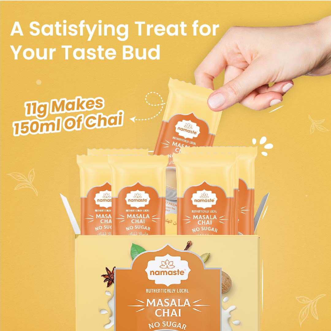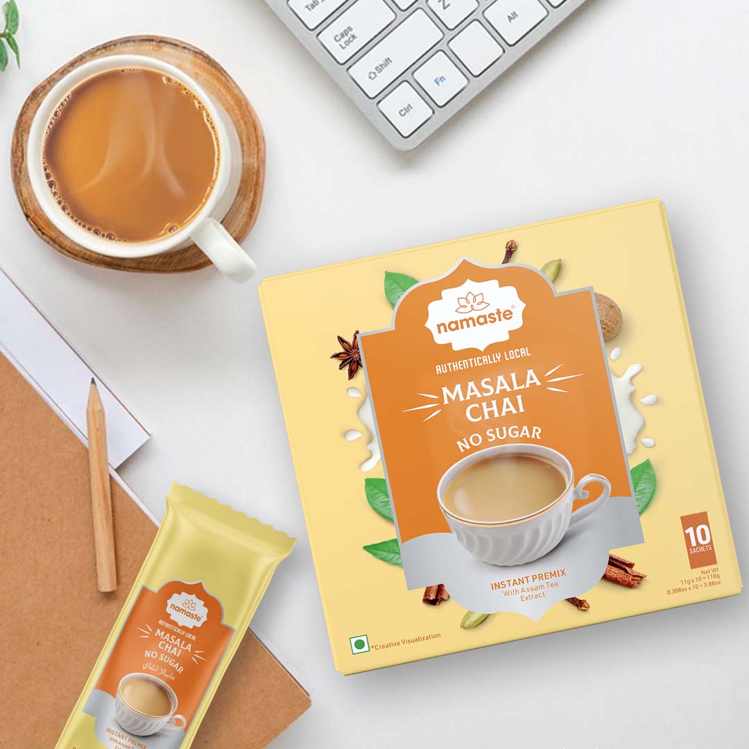 Namaste Chai Instant Tea premix contains all natural extracts of tea and Indian spices such as Ginger, clove, cinnamon, nutmeg, and cardamom. Enjoy an instant cup of tea with authentic taste and refreshing aroma. The spices in the Masala chai are proportionately balanced and dairy creamer in our 3in1 premix, gifting you the experience of delicious home-made tea. Enjoy a taste as authentic as home-made tea, in less than 2 minutes.